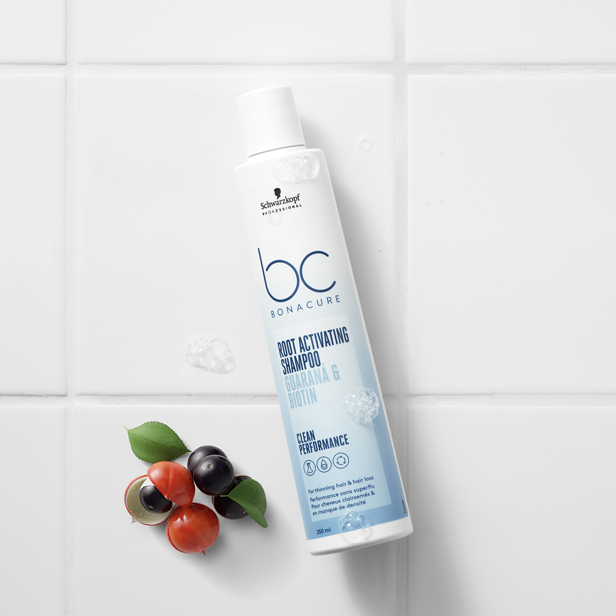 Le Shampooing Activateur Anti-chute BC Scalp Schwarzkopf Pro lave les cheveux clairsemés en douceur tout en les stimulant à la racine.