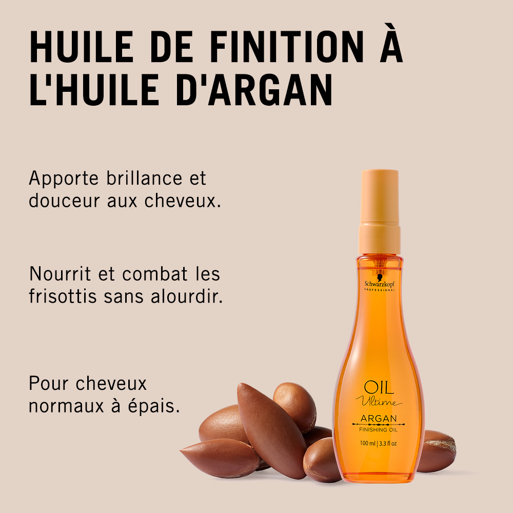 Formulée avec de l’huile d’argan purifiée 100% naturelle, l’huile de finition Oil Ultime à l’Argan protège les cheveux normaux à épais tout en leur apportant brillance et douceur. Sa formule légère et auto-évaporante nourrit et combat les frisottis sans alourdir les cheveux.